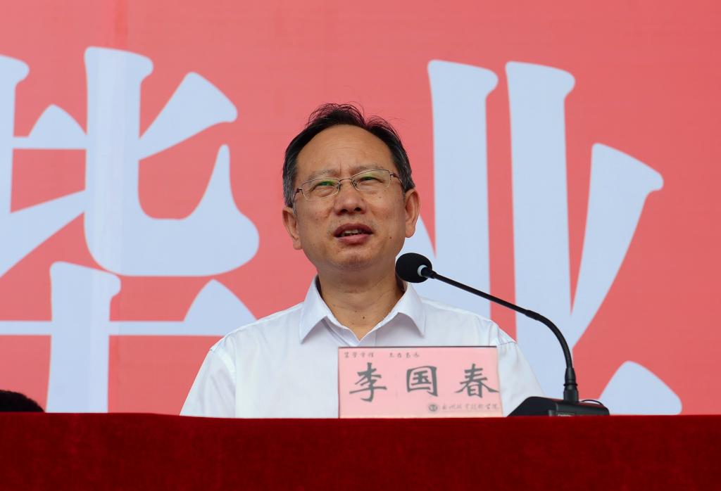 5月14日上午,我校2021届毕业典礼在校本部田径场隆重举行,校党委书记黄小明,党委副书记李国春,党委委员、副校长杨铭,原纪委书记蒋衡湘,党委委员、组织人事部部长熊礼杭,党委委员、宣传统战部部长裴有为出席毕业典礼,各处室和各学院负责人、各学院党支部书记、辅导员以及全校5443名毕业生参加毕业典礼,党委副书记李国春主持。