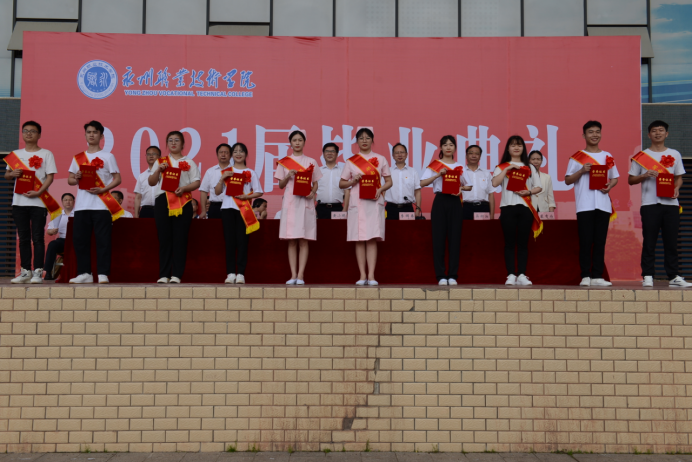 护理学院周雅洁代表2021届毕业生回忆三年永职生活的点点滴滴,表达了对母校的感谢。商学院胡凯耀同学代表在校生表达了对学长学姐们最忠心的祝愿。智能制造与建筑工程学院秦润华书记代表全体教师对即将离校的学子们表达了美好的祝福。
