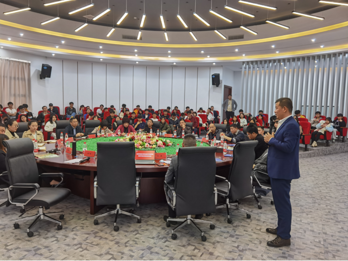 为促进专业建设与企业发展的深度融合,提高现代农业技术专业学生培养质量。4月17日上午,永州职业技术学院党委委员、副校长韩立路带领教务处、农学院、智能制造工程学院相关负责人及20级现代农业技术专业153名特岗生前往华维节水科技集团有限公司华维农装智谷·东安谷开展现代农技特岗生体验式学习活动。160余名师生在华维集团华中区域总经理徐广周、东安谷厂长匡世斌全程陪同下参观了集团中试和农装设备生产中心。接着,全体参与活动成员在会议室召开了座谈会,会议由区域总监吕波主持。