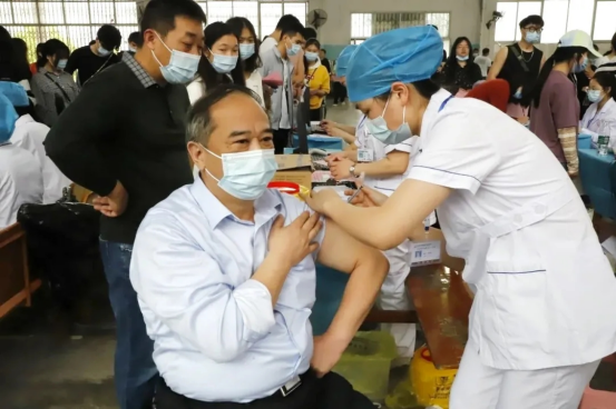 党委书记黄小明带头接种疫苗