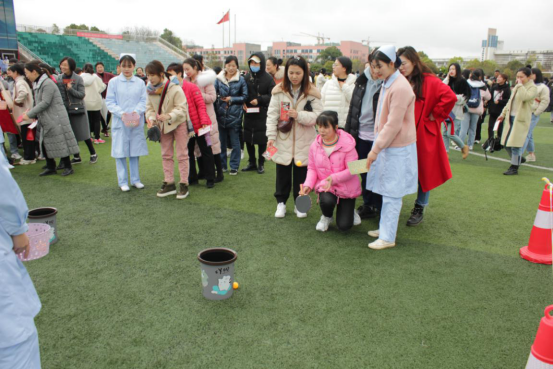 主题活动在3月8日下午的女职工游艺活动中拉开序幕,校党委副书记李国春作了热情洋溢的讲话。他对近几年来校女工及妇委会工作给予了高度评价和充分肯定,为全校女职工献上了最真挚的节日祝福,并寄希望于全校女职工“爱小家”、“顾大家”, 爱岗敬业,为学校改革、建设和发展做出新的更大贡献。游艺活动设有“打卡留念”、“筷落平安”、“黑夜旅行”、“一矢中的”、“拍球进杯”、“哪吒套圈”、“双龙戏珠”、“欢乐吹爆”、“企鹅漫步”、“十全十美”等十个项目。各项比赛精彩纷呈,趣味盎然,活动现场欢声笑语不断,热闹非凡。女老师们个个精神抖擞,灵巧的身影在春风中跳动,灿烂的笑容在温暖的春天里绽放。