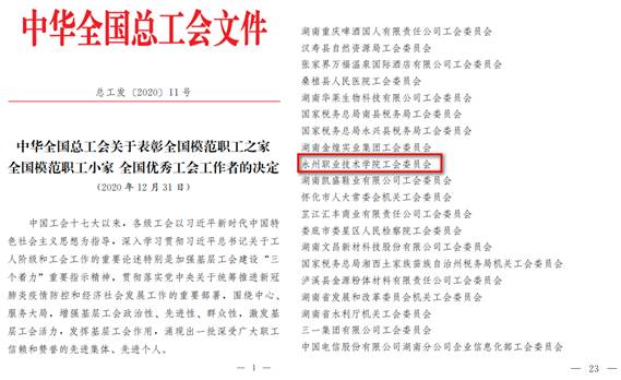 喜讯:永州职院获评“全国模范职工之家”荣誉称号