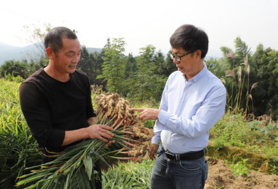 学校科技特派员莫志军教授指导农户种植脱毒虎爪生姜