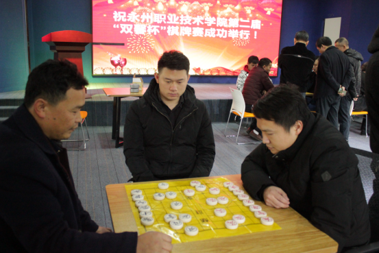 近期,校本部图书馆五楼的创新创业基地热闹非凡,人气高涨,近200名职工欢聚一堂,欢笑声、叫好声不绝于耳,永州职业技术学院第二届“双馨杯”棋牌赛正在这里举行。随着学院党委书记黄小明在与围棋冠军肖守斌的表演赛结束,历经一周的激烈角逐、由校工会举办的第二届“双馨杯”棋牌赛圆满落幕。