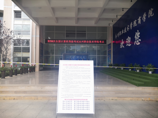 考试期间,学校党委委员、纪委书记蒋衡湘到考场检查指导工作,永州市教育局刘安球副局长和考试院罗光明院长对考试过程进行监督和指导,对考试的组织管理、疫情防控等工作给予充分肯定。