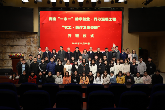 30日下午,湖南“一家一”助学就业·同心温暖工程“农工·医疗卫生委班”开班仪式在永州职业技术学院举行,湖南省人大常委、农工党湖南省委会专职副主委蒋秋桃,永州市政协副主席欧阳德群,永州职业技术学院党委书记黄小明,永州职业技术学院党委副书记、校长翟惠根,永州市委统战部副部长邓晓明,农工党湖南省委会社会服务处处长罗创,永州职院优秀校友、爱心企业家长沙诗恩医疗器械有限公司总经理刘飞等领导和嘉宾出席,永州职业技术学院相关领导和部门负责同志、受资助的贫困学生和家长代表参加,仪式由永州市政协副主席欧阳德群主持。