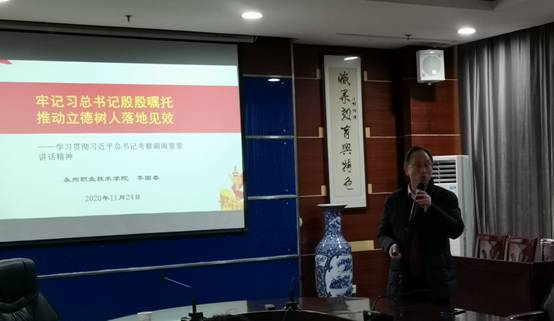 协会成立大会后,协会立即开展了第一次理论学习。协会特邀学校党委副书记李国春同志为协会全体成员讲题为《牢记习总书记殷殷嘱托,推动立德树人落地见效》的党课。李国春书记以学习贯彻习近平总书记考察湖南重要讲话精神为切入点,结合习近平总书记提出的《思政课是落实立德树人根本任务的关键课程》的相关要求,要求全体与会教师要做到点亮一盏灯,树好一面旗、上好一堂课、紧绷一根弦,积极承担和落实思政课立德树人的根本任务,运用红色基因孕育滋养时代新人,用坚定的理想信念点亮学生人生航程的灯塔,永远听党话、跟党走。国春书记的理论讲座既有思想的深度、理论的高度又有实践的力度,给与会老师带来了一次精神享受大餐,有力地提高与会老师的思想理论水平。