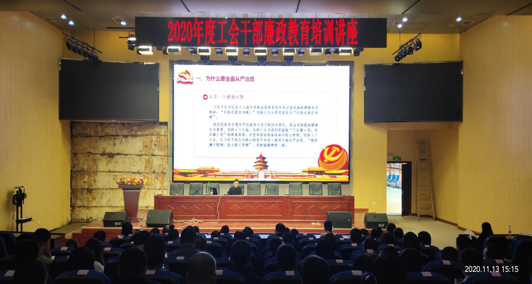 11月13日下午,永州职业技术学院工会在校本部图书馆报告厅举办工会干部廉政教育培训,邀请市纪委党风政风监督室副主任杨勇兵作了以“全面从严治党”为主题的高校廉政教育知识讲座。课后,全体工会干部还开展了廉政知识竞赛活动。校领导李晶、熊礼杭、裴有为、刘晓兰及校工会、分工会干部70余人参加了活动。