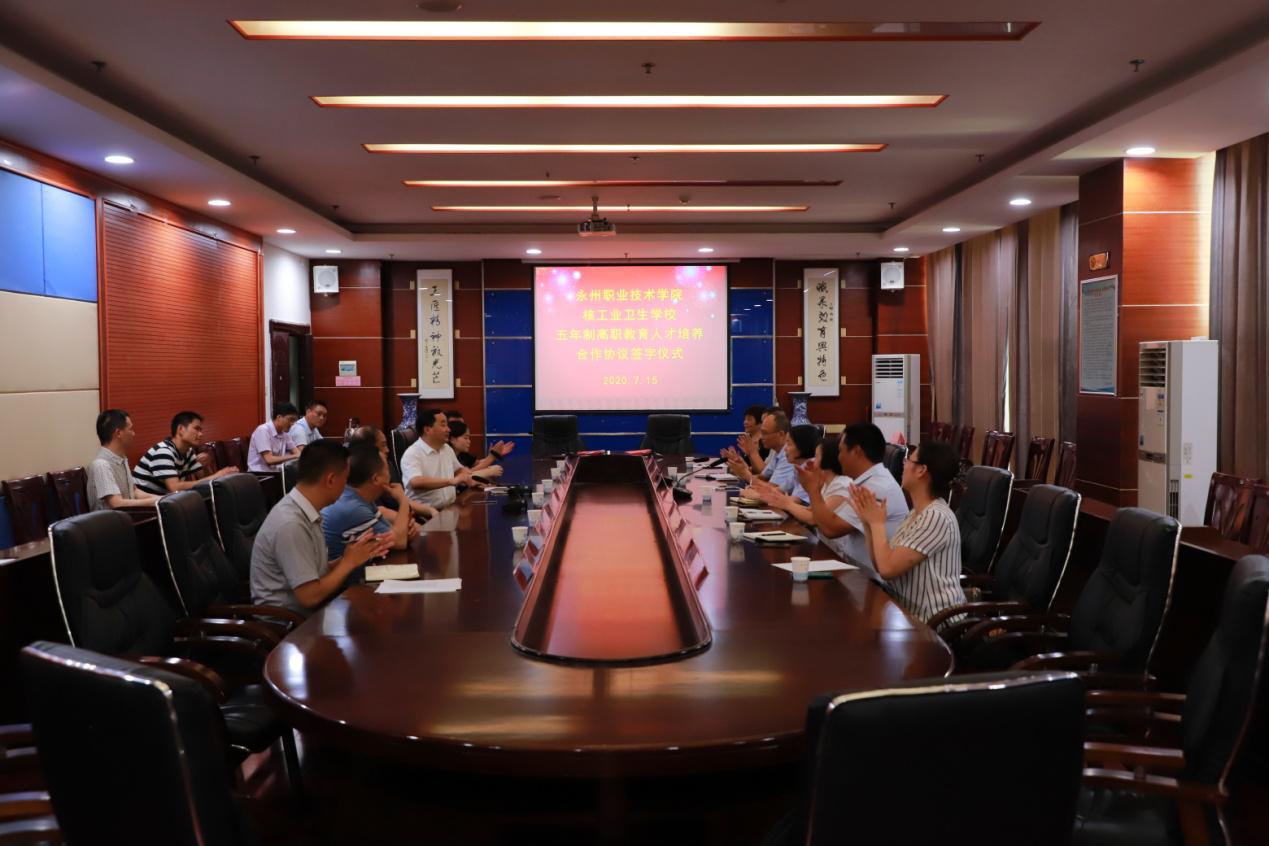 根据省教育厅的统一安排部署,为深化中高职教育衔接,有效做好中高职五年制贯通培养工作,7月15日我校与省内核工业卫生学校和永州市工商职业中等专业学校两所优质中职学校签订《五年制高职教育人才培养合作协议》。