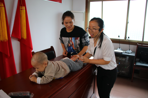 在向家亭社区开展的活动以《轻松当妈,健康养娃》为主题,由永州职院医学院徐琼芳老师主讲,并现场进行实操示范教宝妈如何进行婴幼儿抚触,倡导宝妈们通过科学、规范的手法帮助宝宝更加健康的成长。