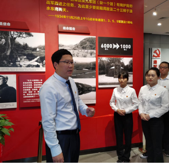 党员同志与入党积极分子站在陈树湘塑像下,聆听了陈树湘如何加入共产党,如何快速成长起来,最后为了保卫党中央,在突围过程中不幸被俘,宁死不屈,断肠明志,壮烈牺牲的事迹,陈树湘以29岁的青春年华实现了“为苏维埃共和国流尽最后一滴血”的铮铮誓言,彰显了一名共产党人的伟大精神和高贵品质。