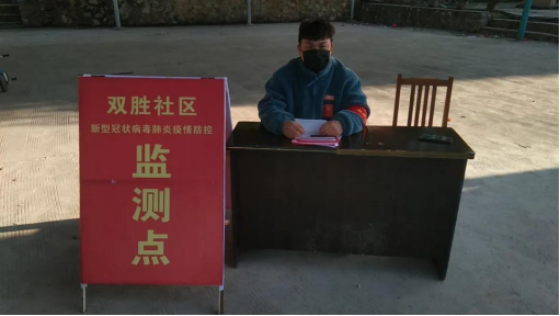 易尔天,信息工程学院2018级计网1班学生。自1月28日起,主动向雷波县上田坝乡的村委会报道,积极参与疫情防控工作,参与站岗值班,拦截进村车辆和劝返非本村人员,督促他人戴口罩(左边穿黄白相间运动服)。