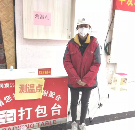 护理学院17级五年制助产班学生廖佳英在道县某超市入口开展志愿服务