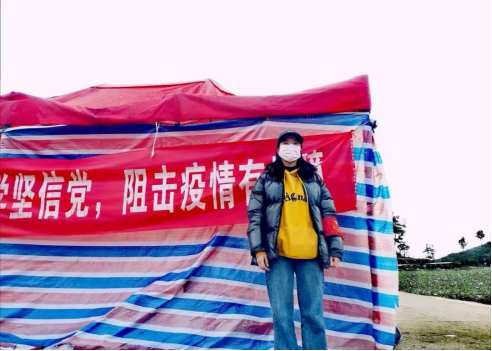 杨秀琴,医学院2019级口腔医学3班学生。在贵州省毕节市黔西县协和镇石浪厂村委员会报道,担任疫情防控志愿者,协助村委会对外来的人员和车辆进行排查、登记和劝返。