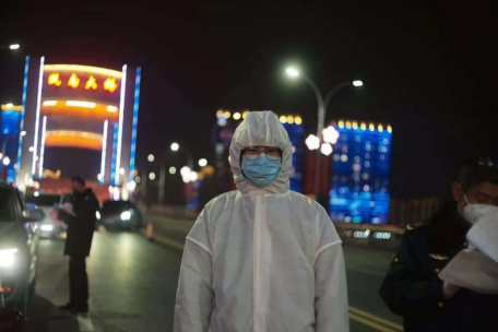 蒋昭享,医学院2018级口腔1班学生,1月31日至2月5日开始至今,参加温州市龙港市基层卫生单位组织的疫情防控工作,在瓯南大桥、龙港高速路口(24小时轮班),为进出人员测量体温。