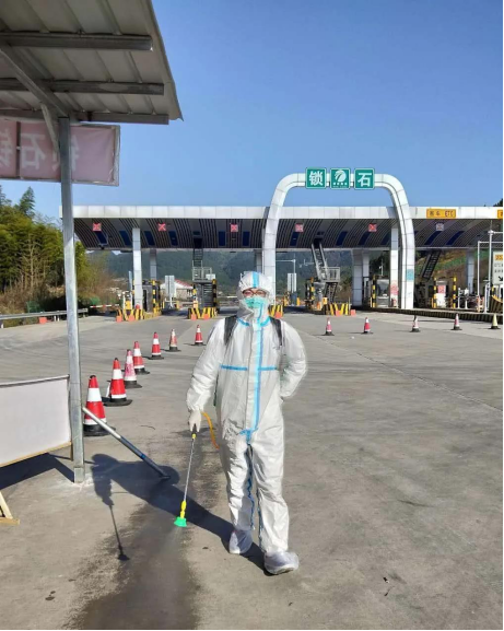 赵杰之,医学院2018级临床2班学生,班级劳动委员。2月上旬开始,在双峰县锁石卫生院参与疫情消毒、预检分诊台工作,并在锁石收费站,为来往人员和车辆进行体温测量、喷洒消毒液。