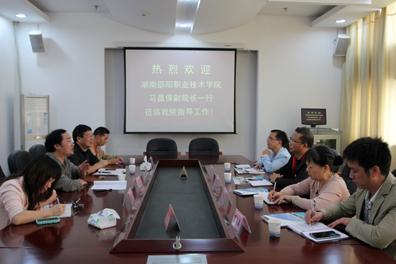 10月13日上午,邵阳职业技术学院副院长马昌保一行4人来我院考察交流。学院副院长韩立路、党政办主任熊礼杭、党政办副主任兼教育阳光服务中心常务副主任欧阳群宏及网络信息中心、宣传统战部有关同志陪同客人考察、参观了学院本部校园、校史馆、教育阳光服务中心大厅。
