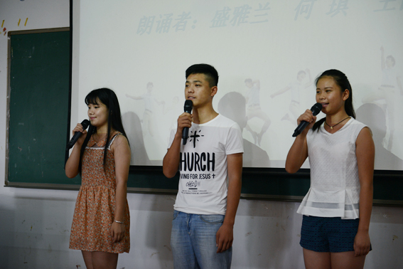 盛雅兰、何琪、王问道同学朗诵《以青春的名义宣誓》