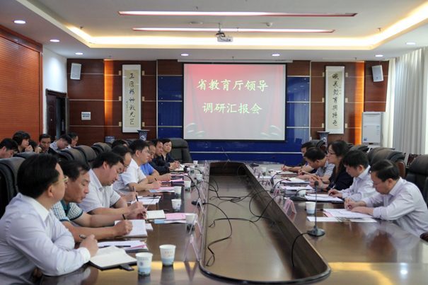 10月10日上午,省教育厅副厅长应若平,省教育厅职成处副处长朱日红(主持工作)、副处长周韶峰来我院调研指导工作,市教育局局长蒋俊林,副局长刘安球,职成科科长欧阳军陪同调研。