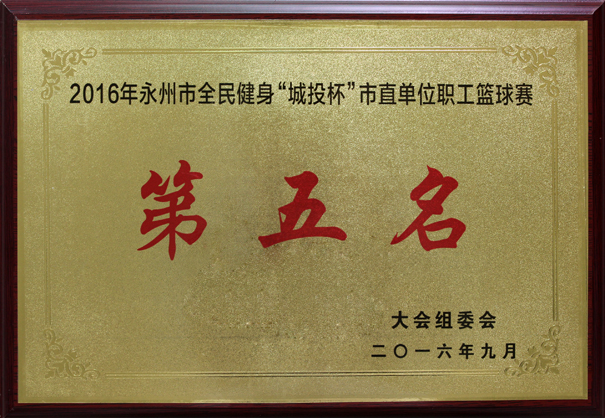 9月26—30日,我院男子篮球代表队在院工会主席李晶、副院长王中军的带领下,经过5场激烈角逐,在17支代表队中脱颖而出,获得2016年度“城投杯”市直单位职工篮球赛第五名,创历史佳绩。