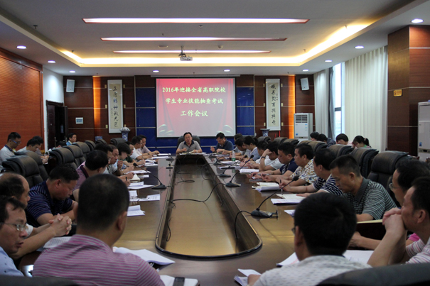 为切实做好我院2016年学生专业技能抽考工作,2016年9月28日下午,在办公楼3楼会议室召开迎接全省“学生专业技能抽考”工作会议。副院长王中军、院长助理唐陶富、教务处和学工部负责人、各系部主任和支部书记等40余人参加了会议。