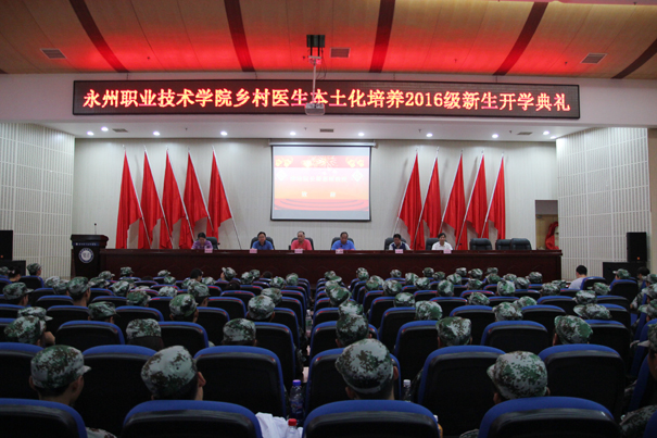 9月19日下午3点,我院2016级乡村医生班开学典礼在院本部多功能报告厅隆重举行。学院党委副书记、院长翟惠根、湖南省卫计委培训中心副主任张光明、招生科科长夏灿磊、永州市卫计委副主任刘建雄、基层卫生科科长蒋明宏,临床医学系负责人和部分教师代表及211名乡村医生班学生参加了开学典礼。开学典礼由学院副院长王中军主持。