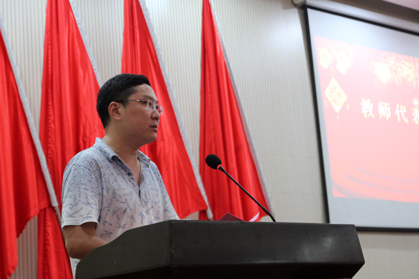 开学典礼在雄壮的国歌中开始。翟惠根院长首先对省市卫计委各位领导的来临表示感谢,对2016级乡村医生班的新同学们表示欢迎。他向同学们简要介绍了学院基本情况,并要求同学们潜心学习,遵章守规,加强约束,维护良好的教学秩序,夯实理论,联系实际,勤于思考,真正学有所得、学有所用,不断提高自己的业务水平和动手能力,更好地为当地百姓服好务。教师代表李杰、老生代表唐燕琼、新生代表何运鑫分别发言。会上,2016级乡村医学班全体同学宣读了“医学生宣誓”。