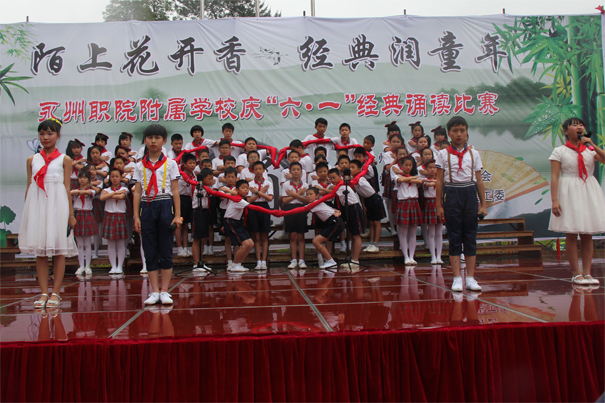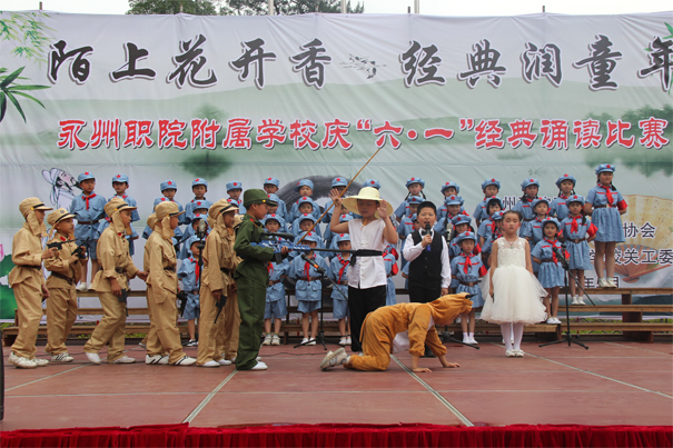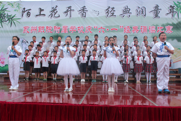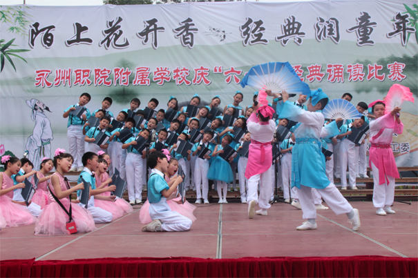 5月24日,我院附属学校举行以“陌上花开香,经典润童年”为主题的庆“六一”经典诵读比赛。全校32个班2100多名学生参赛。比赛现场,朗诵声洒满整个校园,场下传来阵阵掌声。家长们有秩序的配合学校在场外给孩子们加油。一位观看比赛的家长说:“此次活动不仅提升了孩子们的诗歌朗诵水平和语文素养,还让孩子们领略了中华文化的精髓,在经典诵读中潜移默化地接受中华传统文化的熏陶,我们为这次活动点赞。”本次比赛内容精彩纷呈,形式多样。孩子们以情景剧、歌舞表演、诗歌新唱和配乐诗朗诵等多种形式精彩地演绎了经典文化精髓。