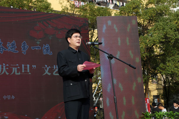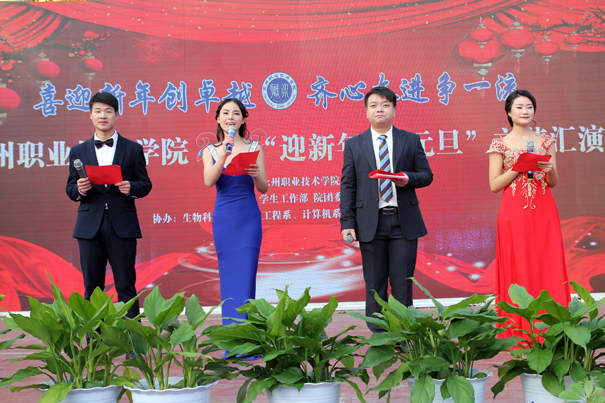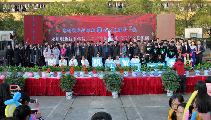 喜迎新年创卓越,齐心奋进争一流。12月26日下午,由学院主办,学生工作部、院团委承办,生物科学系、机械工程系、计算机系、财经系、中管办协办的永州职业技术学院2017年“迎新年•庆元旦”文艺汇演在农学部篮球场隆重举行。学院党委书记黄小明、党委副书记李国春、副院长窦铁生、工会主席李晶、院长助理罗敏杰等院领导,学工部、院团委等部门负责人,生物科学系、机械工程系、计算机系、财经系、中管办等系部书记、教师和学生代表共2000余人观看了演出。演出前,黄小明书记发表新年致辞。