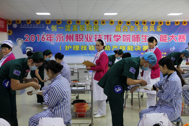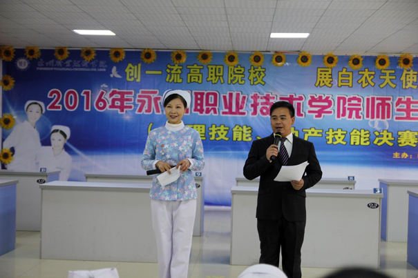 12月13日下午,由教务处、院工会主办,护理系承办的“2016年永州职业技术学院师生技能大赛—护理和助产技能决赛”在医学部隆重举行。院长翟惠根莅临赛场并作重要讲话。