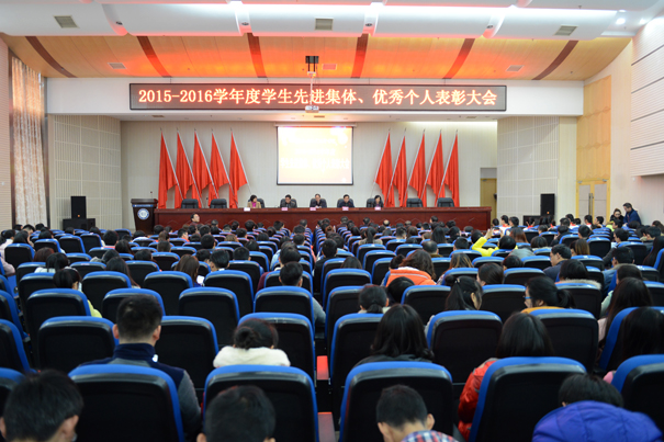 12月13日下午,学院在院本部二楼报告厅隆重举行2015-2016学年度学生先进集体、优秀个人表彰大会。学院党委副书记李国春、副院长韩立路、窦铁生、工会主席李晶、院长助理罗敏杰等领导出席大会。表彰大会由副院长韩立路主持。各相关职能部门负责人、各系(部)书记、主管学生工作副主任、辅导员、获奖学生代表、先进班集体代表及部分学生近400人参加了大会。