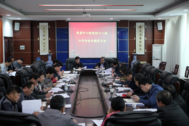 11月4日下午,院党委书记黄小明在办公楼三楼会议室主持召开党委中心组专题学习扩大会,学习贯彻党的十八届六中全会精神。