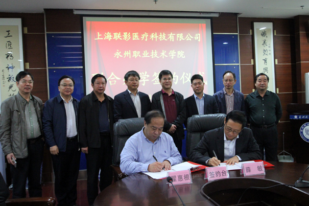 10月20日上午,我院与上海联影医疗科技有限公司在院本部三楼会议室共同签署了“永州职业技术学院与上海联影医疗科技有限公司联合办学协议”, 院长翟惠根与上海联影医疗科技有限公司董事长薛敏分别代表双方在协议书上签字。根据协议,双方将在人才培养方案、实验室建设、教学实习基地、卓越人才基地等方面开展全面合作。