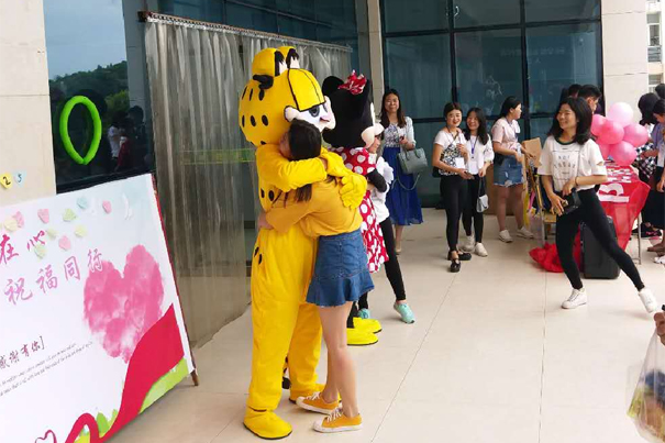 在活动现场,形象可爱的卡通人物吸引了同学们的注意,大家纷纷与卡通人物拥抱合影,并在“感恩”“祝福”的展板上,留下自己对家人、朋友的感恩和祝福。此次活动让大家获得快乐的同时,更传达了,“爱自己,爱他人”的美好理念。