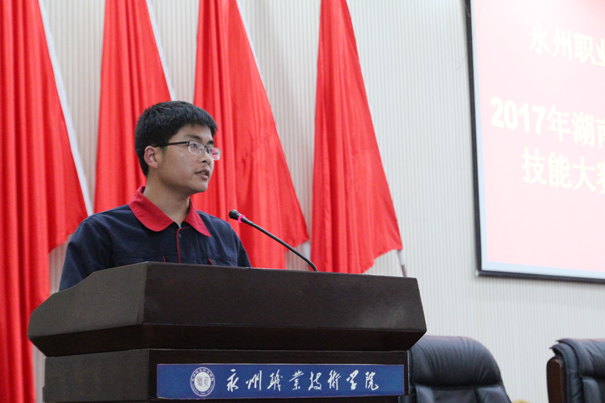 会上,计算机系胡红宇主任、护理系教师周艳云、护理系学生唐天凤和机械工程系学生阳亮分表代表赛项领队、指导老师、参赛选手作了参赛发言。教务处处长吴群力通报了我院本次组队、报名、训练等备赛的情况,强调了15个赛项的备赛、参赛的有关工作和具体要求。
