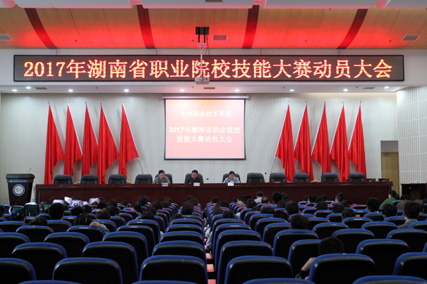 为充分做好2017年湖南省职业院校技能竞赛的备战工作,力争在省赛中取得好成绩,4月18日下午,学院在院本部二楼报告厅召开迎接省职业院校技能竞赛动员会。学院副院长王中军、院长助理唐陶富出席会议。教务处相关负责同志、9个参赛项目的系部负责人、15个参赛项目的领队、35名指导教师、49名参赛选手等100余人参加了会议。会议由院长助理唐陶富主持。