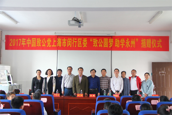 2017年4月14日下午,中国致公党上海市闵行区委“致公圆梦 助学永州”捐赠仪式在我院附属学校隆重举行。中国致公党上海闵行区委主委、上海交通大学先进产业技术研究院副院长孙康,永州市教育局党组成员、主任督学杨兰荣出席会议并讲话。捐赠仪式由附属学校副校长乔黎萍主持。