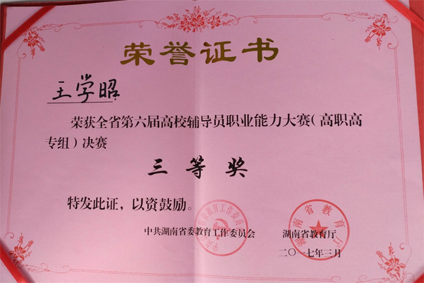 3月30日至31日,湖南省第六届辅导员职业能力大赛决赛(高职高专组)在湖南机电职业技术学院圆满结束。我院参赛团队首次进入决赛,并获得第六名的好成绩;参赛个人杨畅、郭佳宁荣获二等奖,王学昭荣获三等奖。