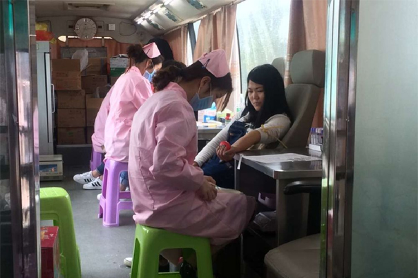 3月28日上午10点,市中心血站的采血车还未停稳,参加无偿献血人员闻声而来排成了长队。他们在工作人员及学生志愿者的引导下,领取登记表,填写信息,量血压,验血型……师生们纷纷用自己的热血抒写了一曲曲爱的赞歌。“这是我第一次献血,我希望可以帮助到那些需要帮助的人。”一位正在献血的同学如是说。