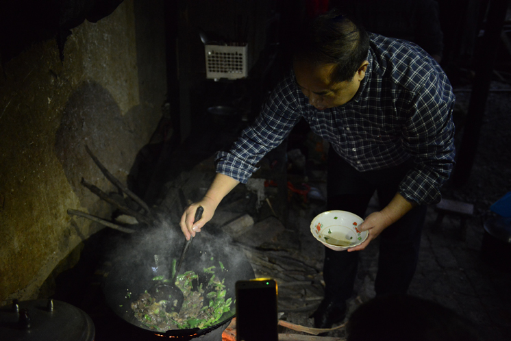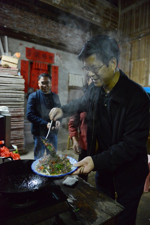 党委书记黄小明到贫困户蒋先鹤家下厨做饭