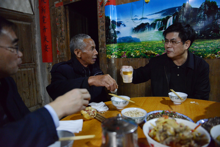 党委书记黄小明与蒋先鹤同桌吃饭、聊家常
