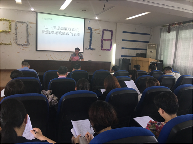 为加强党风廉政建设,预防腐败犯罪,6月5日下午,永州职院附属医院党总支组织全院中层以上干部和全体党员120余人,在多功能报告厅聆听了党总支书记杨铭同志讲授的廉政党课,并观看了反腐倡廉警示教育片《金手铐》。