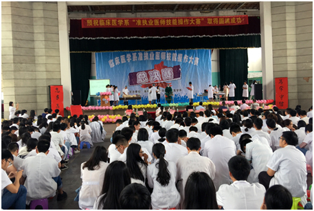 为强化临床医学专业学生的临床综合技能,营造良好的学习氛围, 6月5日,临床医学系在医学部大礼堂举行2018年准执业医师技能操作大赛总决赛。学院副院长韩立路、副院长王中军、教务处、学生工作部、院团委、基础医学部等部门负责人以及临床医学系的领导和老师到场进行指导。