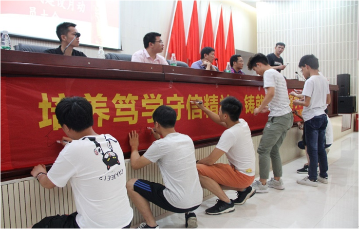 会议结束后,出席本次会议的全体师生在“培养笃学守信精神,铸就端正严谨学风”的横幅上郑重地签下了自己的名字,留下了一份庄严的承诺。同学们纷纷表示要以此次学风建设动员大会为契机,向优秀的班级和同学学习,志存高远,脚踏实地,团结拼搏,锐意进取,形成比学赶超的良好学习氛围,为营造良好的班风学风而努力。真正做到你添彩、我添彩、学院更精彩。