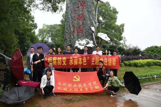 为深入学习贯彻党的十九大精神,进一步加强党风廉政建设,增强支部党员干部的廉政意识,4月29日,机械工程系党支部组织全体党员前往永州市廉政文化主题公园——“清风园”开展“拒腐防变,永葆初心”为主题的党日活动。学院党委委员,宣传统战部部长裴有为参与了此次活动。