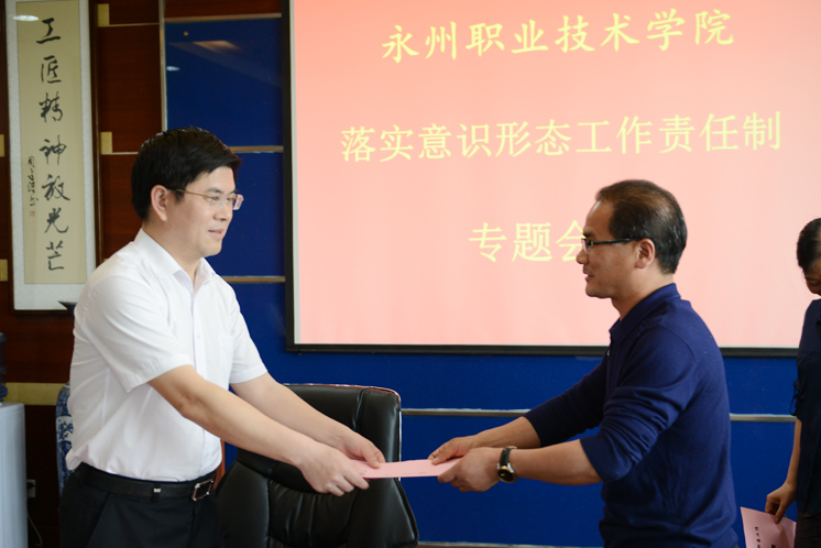 处室负责人向党委书记黄小明递交《意识形态工作责任书》