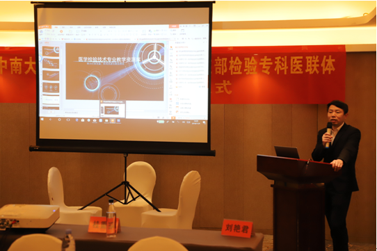 由我院牵头主持的国家医学检验专业资源库建设坚持校企合作、共建共享,为医学检验技术行业、企业服务,为医学检验技术专业发展提供智力支持。中南大学湘雅医院、中南大学湘雅二医院、湖南省人民医院、永州市中心医院是检验资源库联合建设单位。11月4日上午,我院桂重阳副教授代表学院介绍医学检验技术专业国家级教学资源库建设情况,他从医学检验技术专业办学历史、专业建设与发展、国家级专业资源库建设的意义、资源库的推广应用等作了简明扼要的演讲,播放了资源库宣传视频,与会人员对资源库建设的积极意义十分赞同,纷纷表示支持项目建设。
