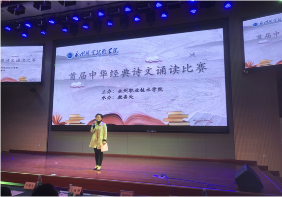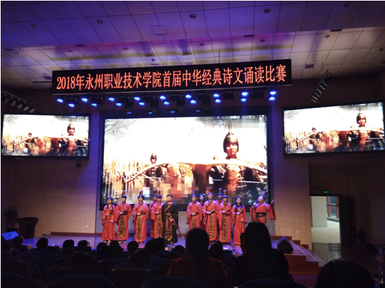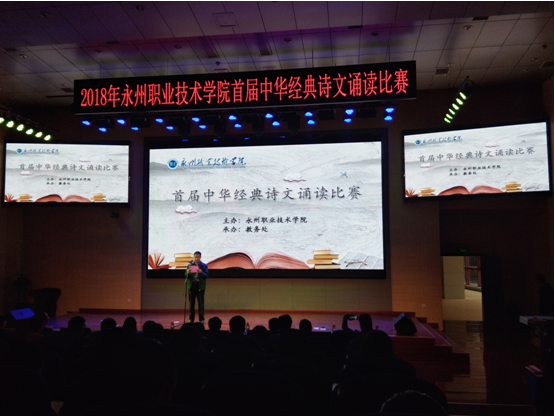 潇水清流浩浩荡荡,永职校园书声朗朗。10月23日下午,由教务处承办的首届中华经典诗文诵读比赛在图书馆三楼报告厅成功举行。党委委员、副院长窦铁生,学院党政办、教务处、招生处、团委负责人和各系党支部书记及300余名师生代表齐聚一堂,各系选拔推荐的14个节目在比赛中先后登场,吟咏经典,畅叙情怀。