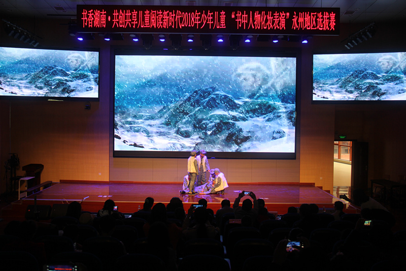日前,由永州市文体广电新闻出版局主办、我院图书馆承办的湖南省少年儿童“书中人物化妆表演” 活动永州地区选拔赛在图书馆三楼报告厅隆重举行。共有来自冷水滩区、双牌县、宁远县的6支代表队参赛,经过激烈角逐,冷水滩区梅湾小学参赛队表演的情景剧《长征•丰碑》荣获一等奖,该队将代表永州市参加湖南省决赛。