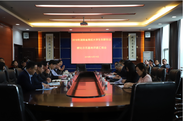 10月19日,受省教育厅委托,湖南省高校大学生创新创业孵化示范基地评审专家组一行6人,对我院创新创业孵化基地进行现场考评。党委书记黄小明主持汇报会并致辞,院长翟惠根作专题汇报,党委委员、副院长窦铁生陪同考评。